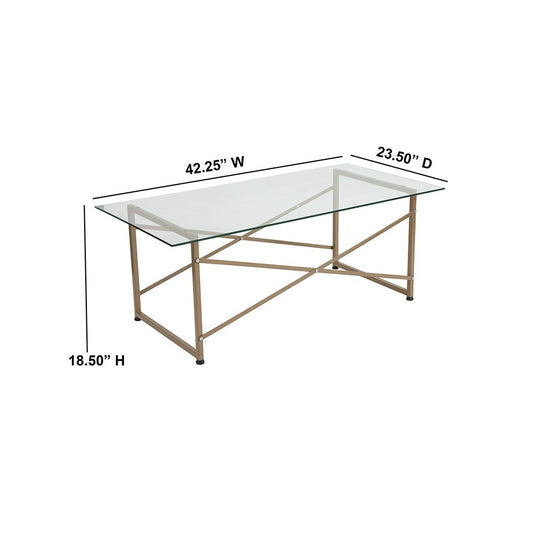 Mar Vista Collection Glass Coffee Table with Matte Gold Frame