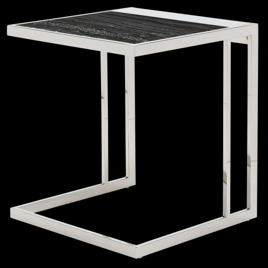 Dell Black Wood Vein Stone Side Table, HGNA287