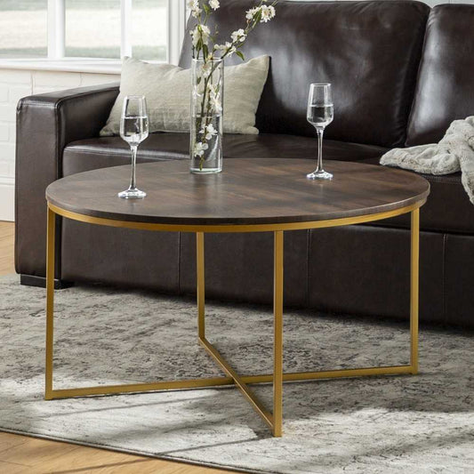 Alissa Mid Century Modern Round Coffee Table - Dark Walnut/Gold