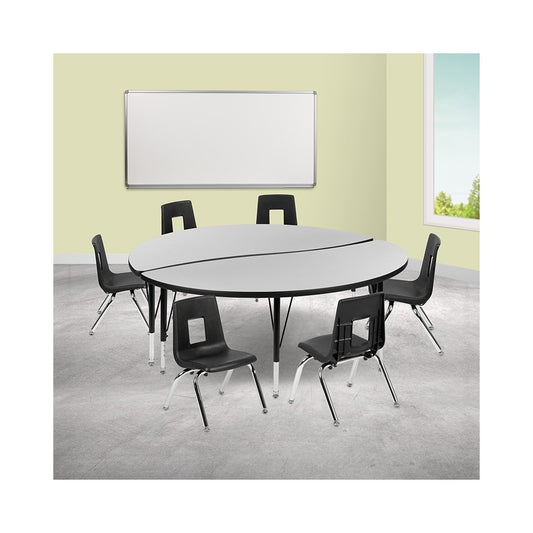 60" Circle Wave Collaborative Laminate Activity Table Set with 14" Student Stack Chairs, Gray/Black