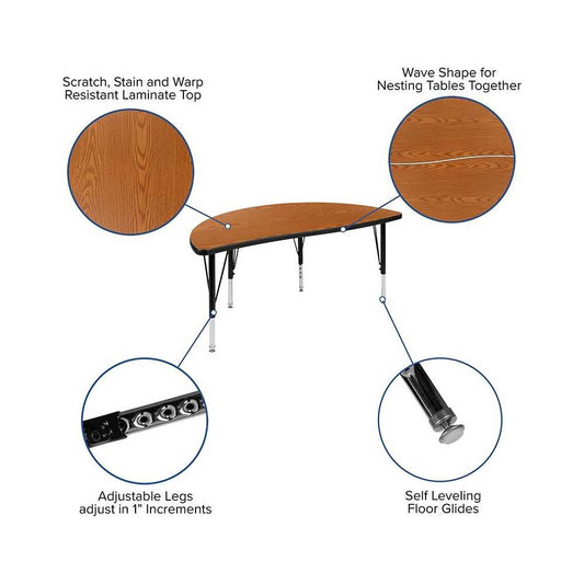 47.5" Circle Wave Collaborative Laminate Activity Table Set with 14" Student Stack Chairs, Oak/Black