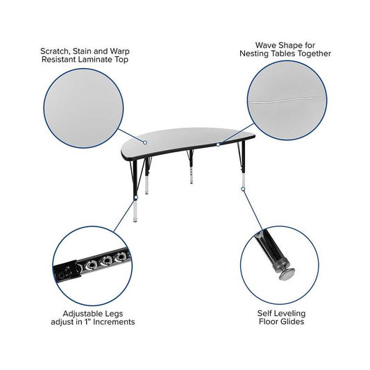 47.5" Circle Wave Collaborative Laminate Activity Table Set with 14" Student Stack Chairs, Gray/Black