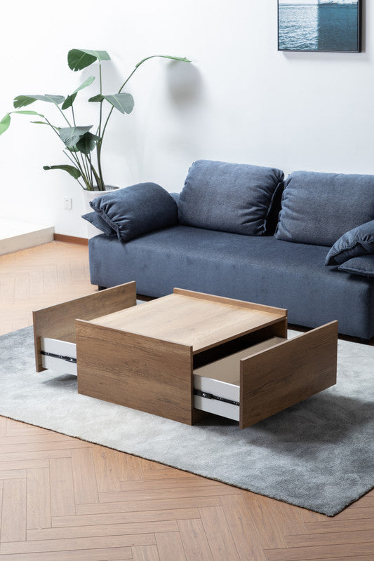 Eleanor Light Brown Wood Finish Coffee Table with 2 Handleless drawers