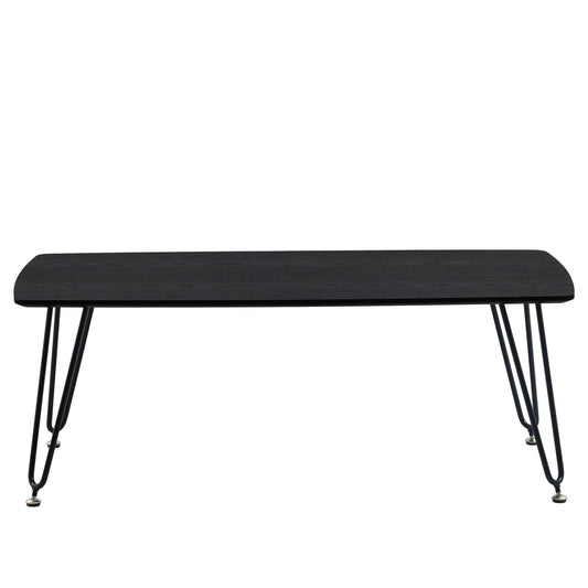 LeisureMod Elmwood Modern Wood Top Coffee Table With Iron Base, Black