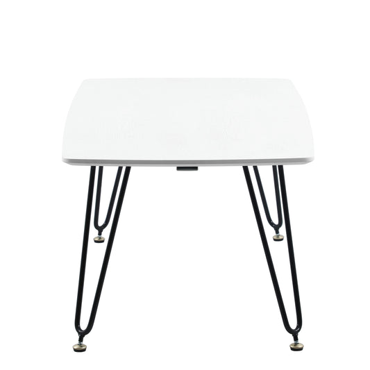 LeisureMod Elmwood Modern Wood Top Coffee Table With Iron Base, White