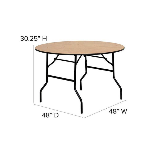 4-Foot Round Wood Folding Banquet Table with Clear Coated Finished Top