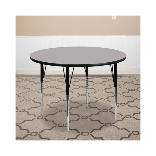 48'' Round Gray Thermal Laminate Activity Table - Height Adjustable Short Legs