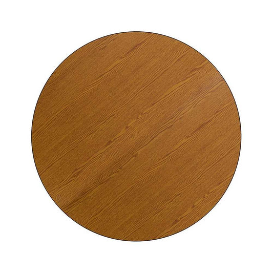 48'' Round Oak Thermal Laminate Activity Table - Height Adjustable Short Legs