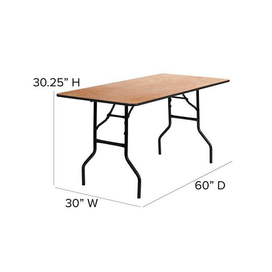5-Foot Rectangular Wood Folding Banquet Table with Clear Coated Finished Top