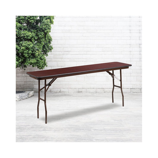 6-Foot Mahogany Melamine Laminate Folding Training Table