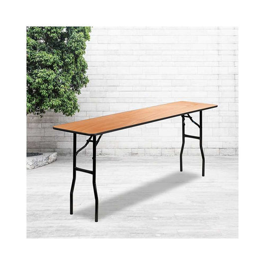 6-Foot Rectangular Wood Folding Banquet Table with Clear Coated Finished Top