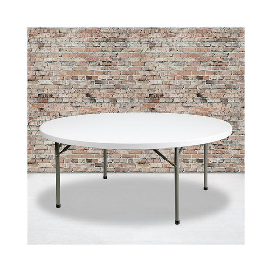 6-Foot Round Granite White Plastic Folding Table