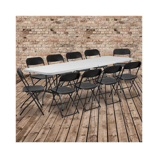 8' Bi-Fold Granite White Plastic Event/Training Folding Table Set with 10 Folding Chairs
