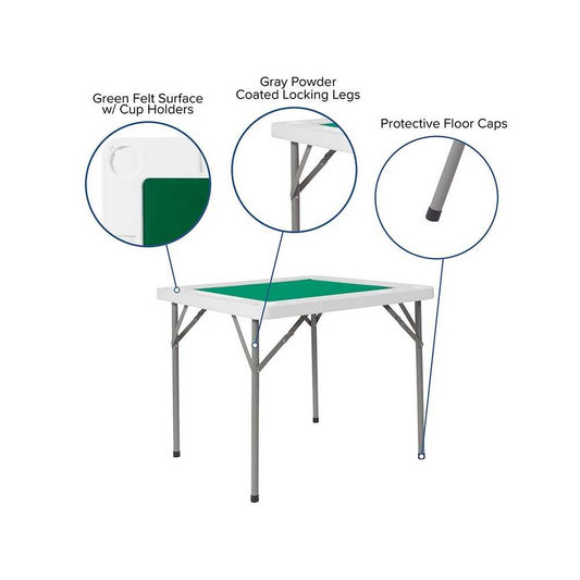34.5" Square 4-Player Folding Card Game Table with Green Playing Surface and Cup Holders