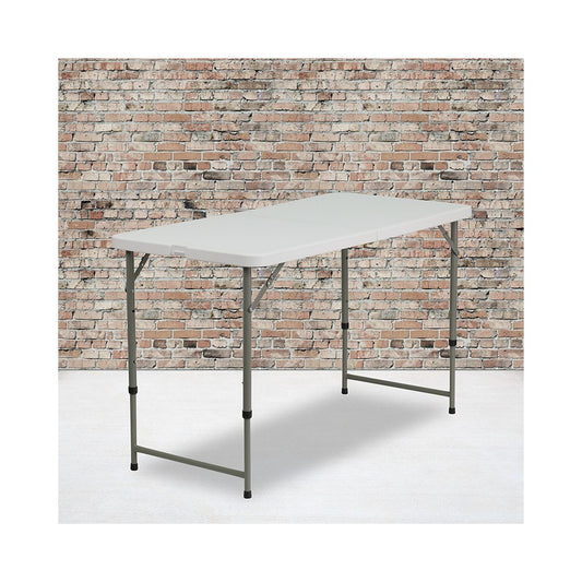 4-Foot Height Adjustable Bi-Fold Granite White Plastic Folding Table