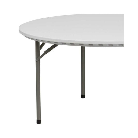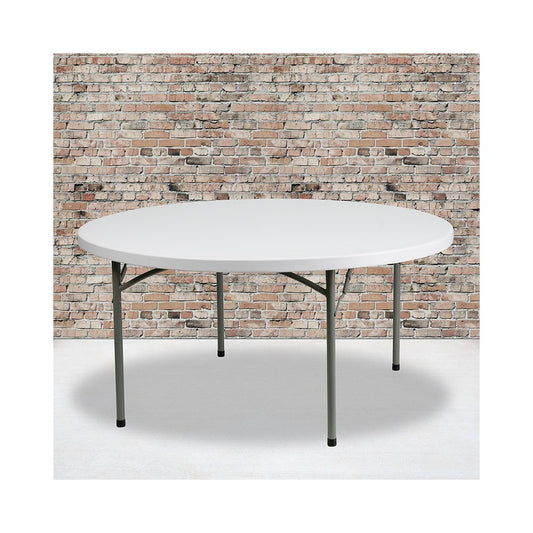 5-Foot Round Bi-Fold White Plastic Folding Table with Carrying Handle