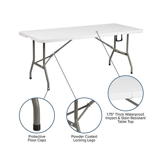 5-Foot Height Adjustable Bi-Fold Granite White Plastic Banquet and Event Folding Table with Carrying Handle