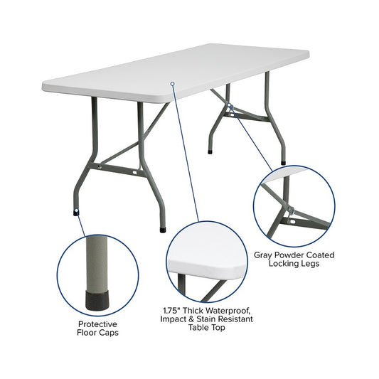 6-Foot Bi-Fold Granite White Plastic Folding Table