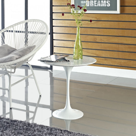 LeisureMod Dover Round Bistro Wood Top Dining Table - White