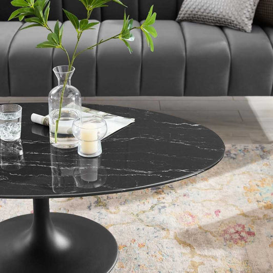 Lippa 48" Oval Artificial Marble Coffee Table, Black Black