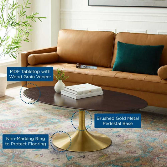 Lippa 48" Oval Wood Coffee Table, Gold Cherry Walnut