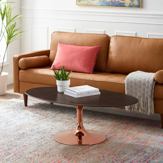 Lippa 48" Oval Artificial Marble Coffee Table, Rose Black