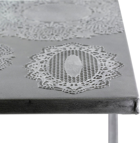 Sunset End Table in Brushed Stainless Steel finish with Gray Top