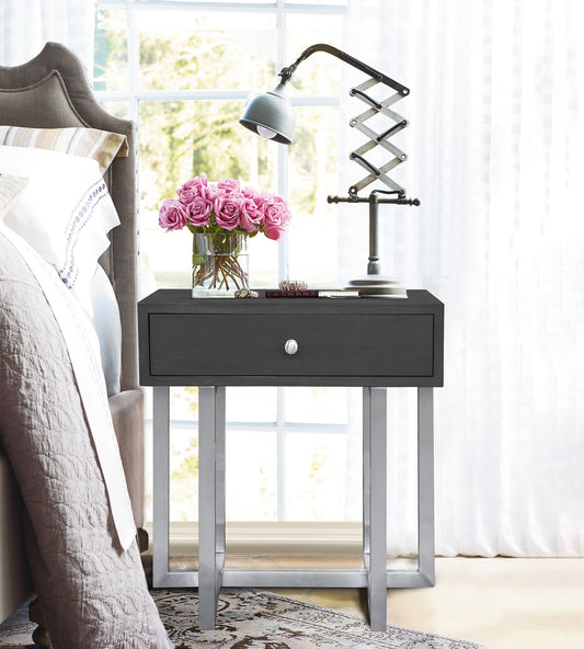 Knight Contemporary Lamp Table in Brushed Stainless Steel Finish with Gray Top
