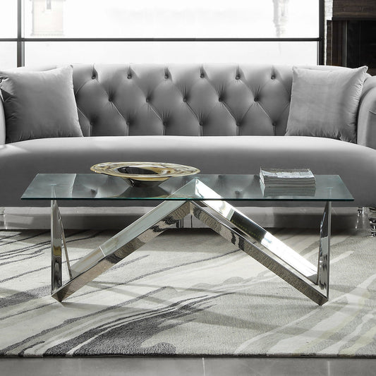 Scarlett Contemporary Rectangular Coffee Table in Polished Steel Finish