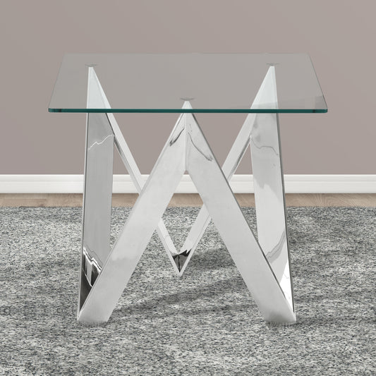 Scarlett Contemporary Square End Table in Polished Steel Finish