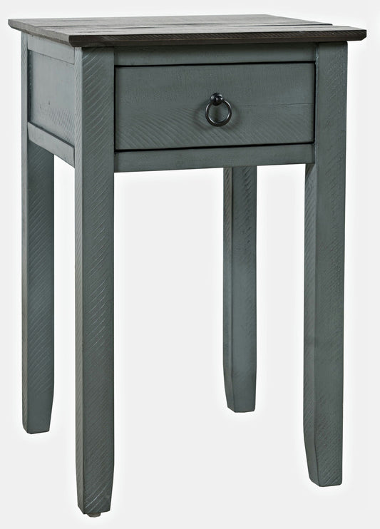 Rustic Shores Distressed Acacia USB Charging Chairside End Table - Stone