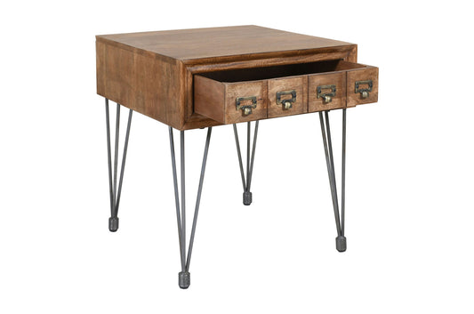 Telluride Rustic Distressed Acacia End Table with Storage - Driftwood Grey
