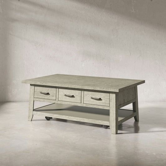 Telluride 50" Coffee Table with Caster Wheels and Pull-Through Drawers - Grey