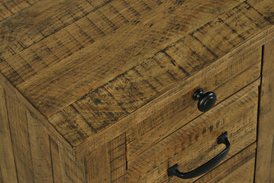 Telluride Rustic Distressed Acacia USB Charging Chairside End Table - Gold