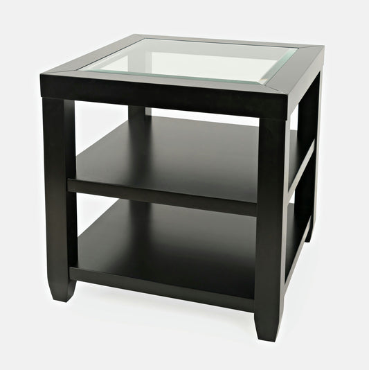 Urban Icon Contemporary Glass Inlay End Table with Storage - Black