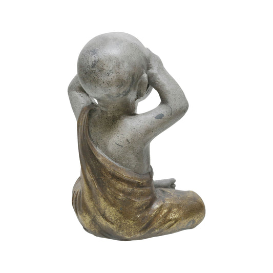 Polyresin 12" No Hear Baby Monk, Gray/gold