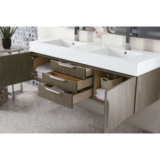 Mercer Island 59" Double Vanity, Ash Gray w/ Glossy White Composite Top