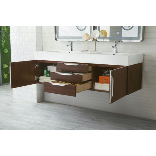 Mercer Island 59" Double Vanity, Coffee Oak w/ Glossy White Composite Top