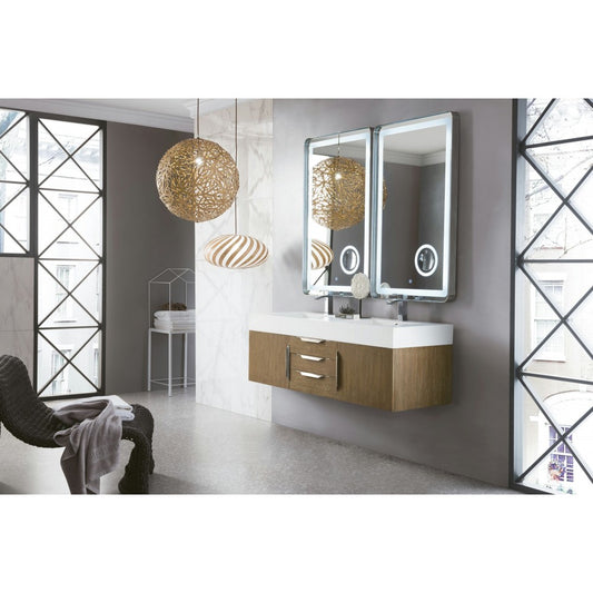 Mercer Island 59" Double Vanity, Latte Oak w/ Glossy White Composite Top