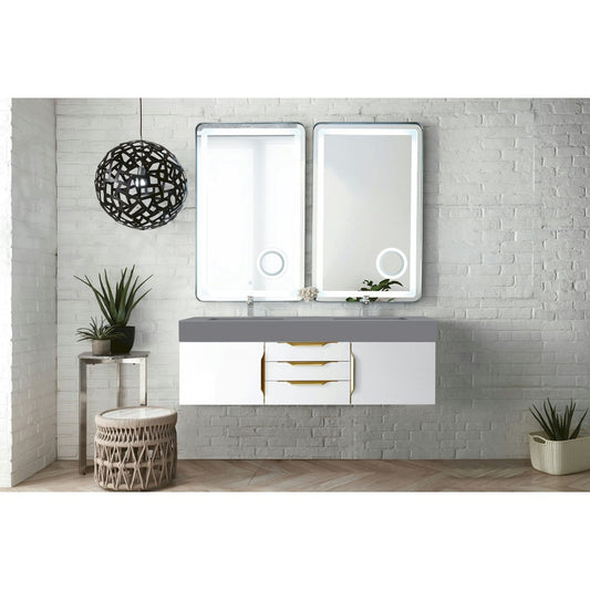 Mercer Island 59" Double Vanity White Radiant Gold w/Dusk Gray Composite Top