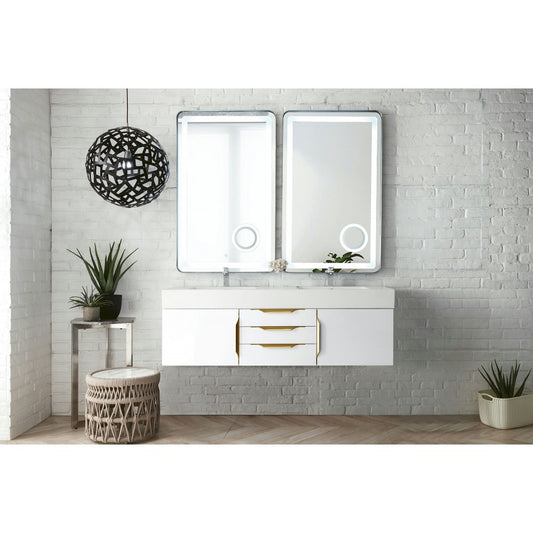 Mercer Island 59" Double Vanity, Glossy White, Radiant Gold