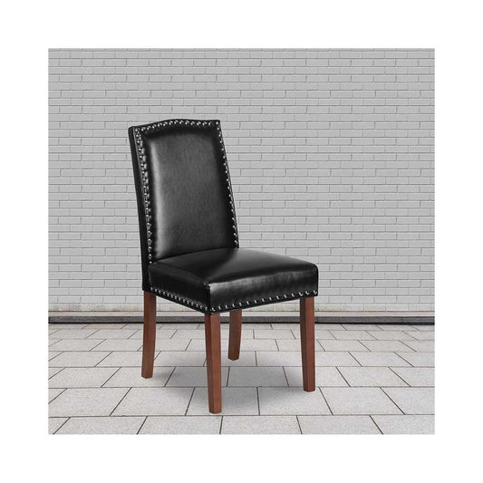 Black LeatherSoft Parsons Chair with Silver Accent Nail Trim