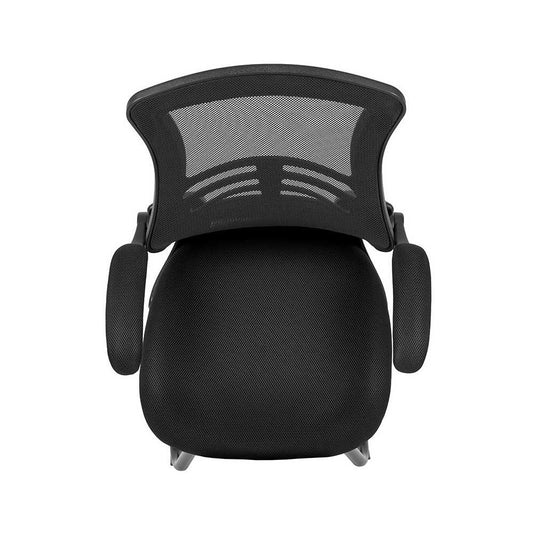 Black Mesh Sled Base Side Reception Chair with Flip-Up Arms