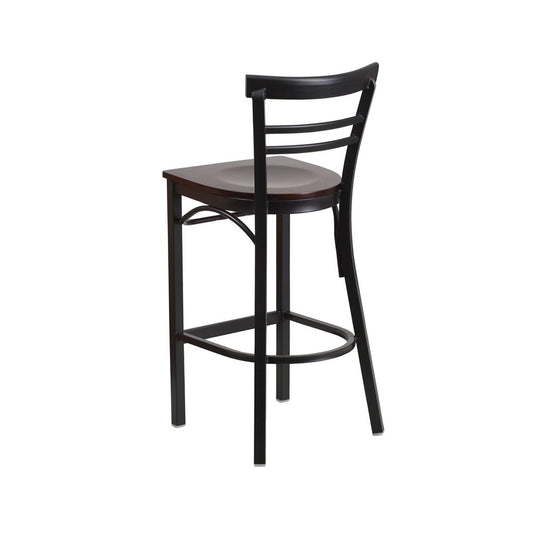 Black Two-Slat Ladder Back Metal Restaurant Barstool - Walnut Wood Seat