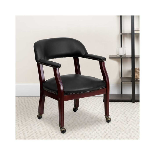 Black Vinyl Luxurious Conference Chair with Accent Nail Trim and Casters
