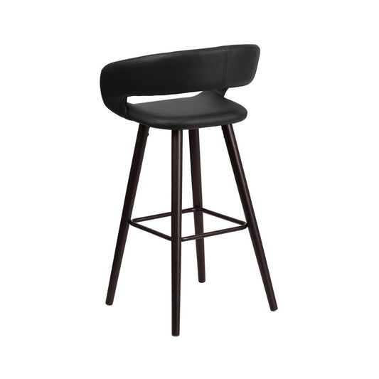 Brynn Series 29'' High Contemporary Cappuccino Wood Barstool in Black Vinyl