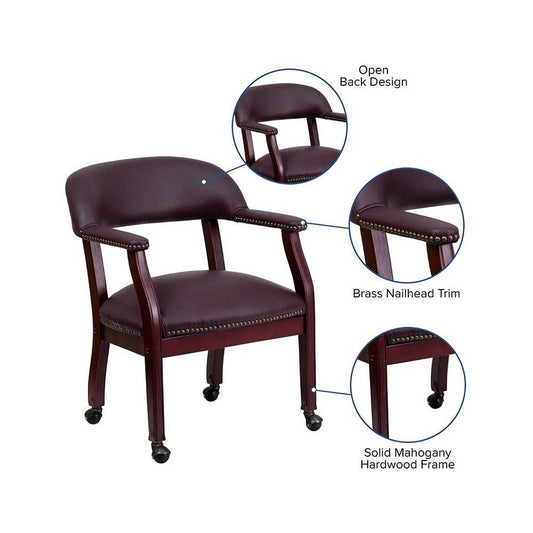 Burgundy LeatherSoft Conference Chair with Accent Nail Trim and Casters