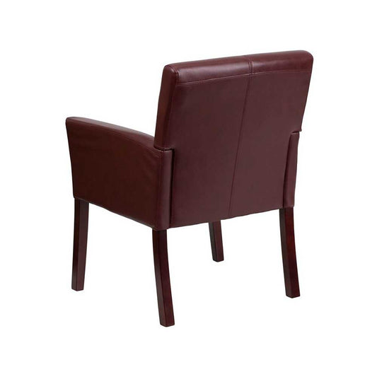 Burgundy LeatherSoft Executive Side Reception Chair with Mahogany Legs