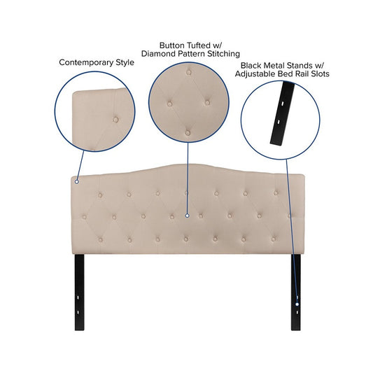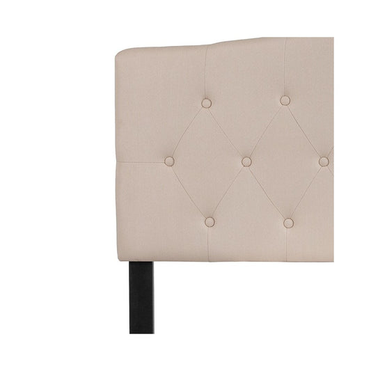 Cambridge Tufted Upholstered Queen Size Headboard in Beige Fabric