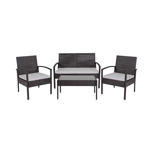 Aransas Series 4 Piece Black Patio Set with Steel Frame and Gray Cushions